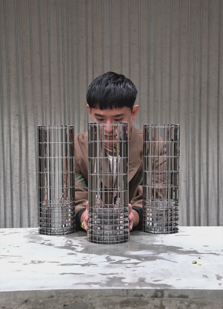 Elevate any bouquet with this unique vase. A glass cylinder wrapped in a geometric grid lets you place flowers from the top or sides—creating bold, modern arrangements with just a few stems.